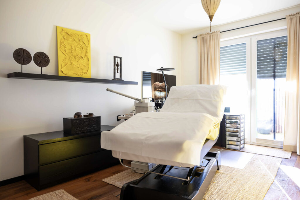 Das Behandlungszimmer im Nani Loft ist ein Ort der Magie – eine Wohlfühloase, in der moderne Eleganz auf warme Gemütlichkeit trifft. Sanfte Farben und eine entspannte Atmosphäre laden zum Abschalten ein, während innovative Behandlungsmethoden behutsam für dein Wohlbefinden sorgen.